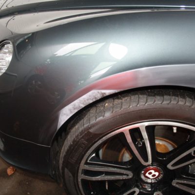 A re-paint of a metallic dark grey Bentley wheel arch.